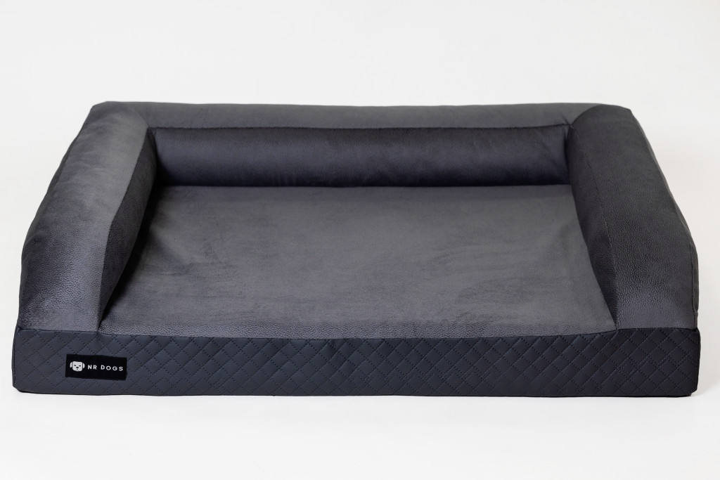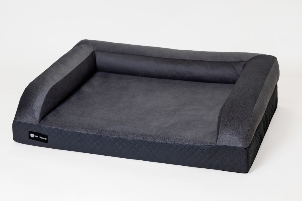 Premium quality orthopedic dog bed with water-repellent cover, providing maximum comfort and joint-friendly rest for your pet. High, soft edges all around, memory foam lying surface, removable, washable cover.