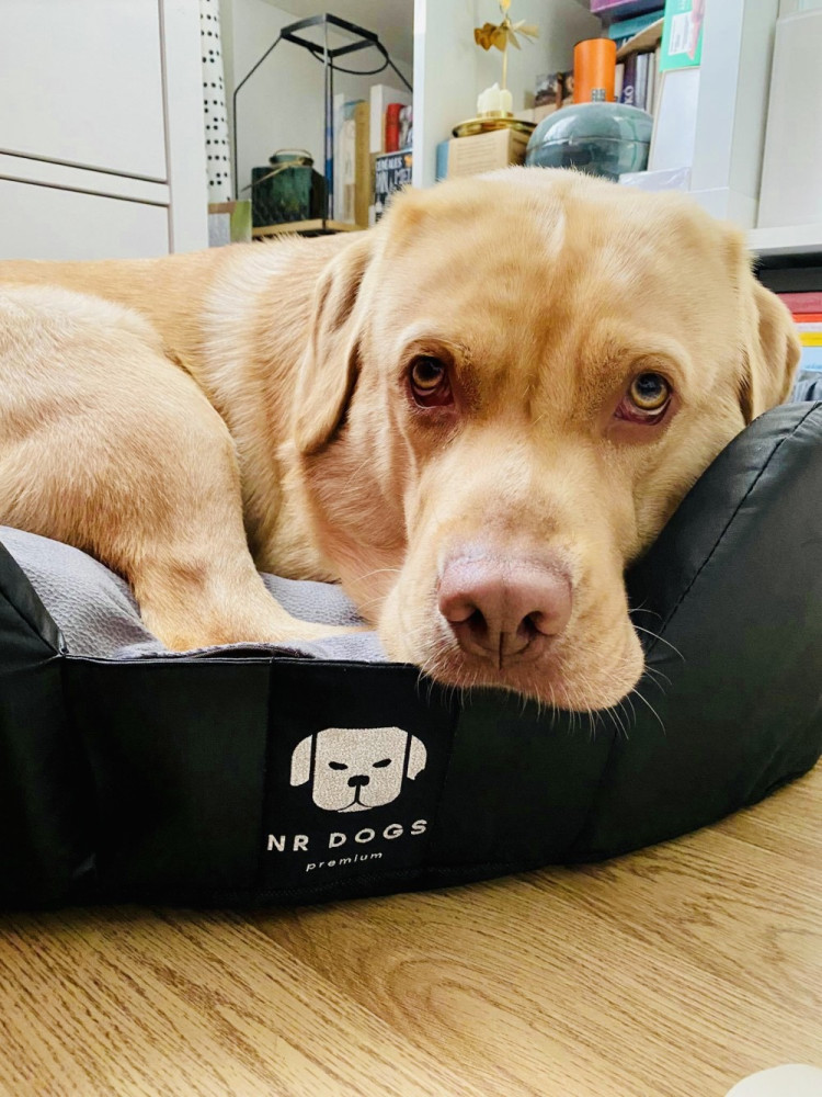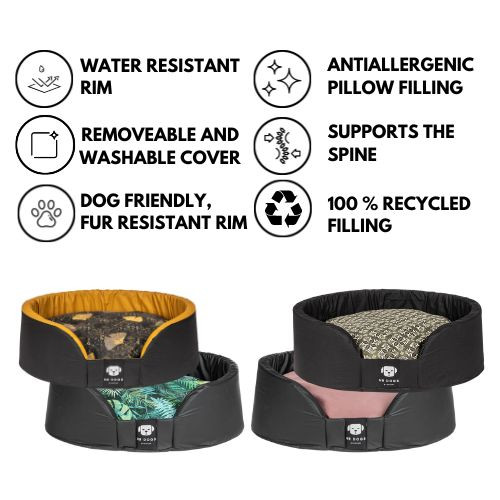This super dog bed consists of two parts. From a "basket" with a rim, the edge of which consists of premium quality 3 cm thick and 20 cm high cold foam sponge. This rim is covered with an easy-to-clean, hair- and dirt-repellent textile. You just need to wipe it off if it gets dirty. Soft, durable and practical! Of course, the basket also has a bottom.